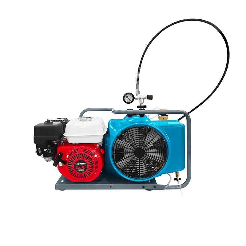 ▶ 快速充气,可同时充装2-4只气瓶,配有2-4根充气软管,提供安全纯净的高压呼吸气源,气体符合欧盟标准EN12021